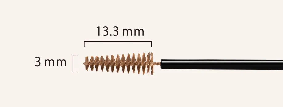 หัวแปรงขนาดเล็กกะทัดรัด ออกแบบมาเพื่อป้องกันไม่ให้เนื้อผลิตภัณฑ์เปื้อนผิว แม้ขนคิ้วที่ขึ้นแนบกับผิวก็สามารถปัดยกขึ้นได้จากโคนปัดเรียงเส้นได้ทีละเส้น พร้อมเคลือบสีถึงปลายขนคิ้วอย่างเป็นธรรมชาติ จัดแต่งทรงคิ้วจากหัวจรดหางได้ตามต้องการ ให้ลุคคิ้วสวยเรียงเส้น