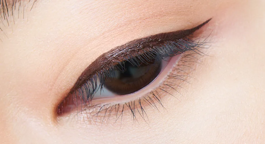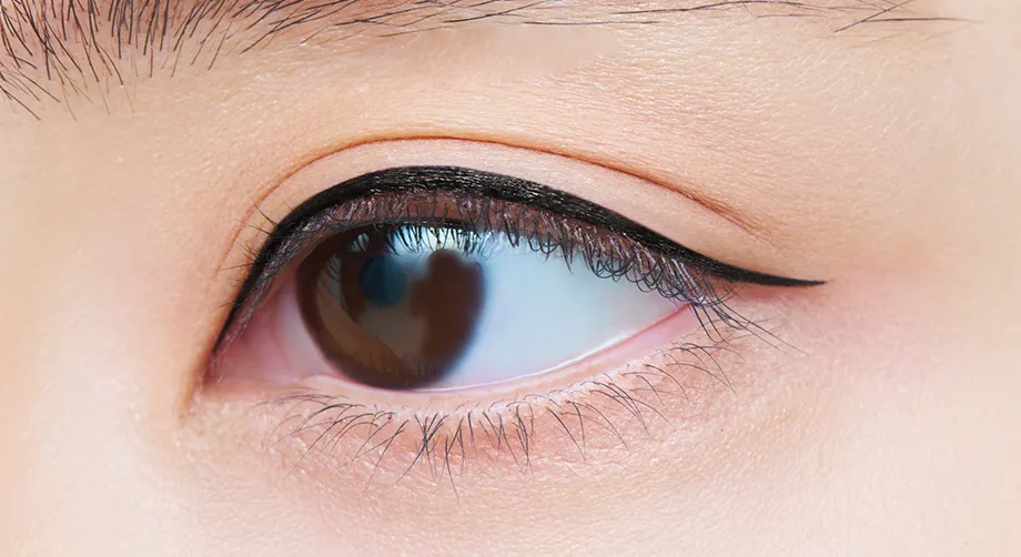ยกเปลือกตาขึ้นเล็กน้อย แล้วเติมเส้นให้ชิดโคนขนตามากที่สุด หรือวาดเส้นเลยหางตาเล็กน้อย